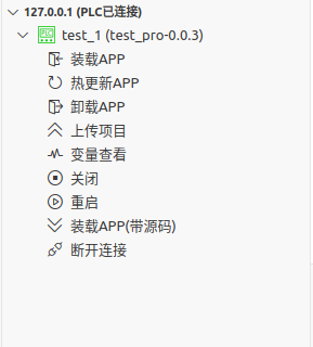 - 连接运行的PLC,打开LD编辑器,点击LD编辑器右上角的监控按钮, 即可进入实时变量监视界面